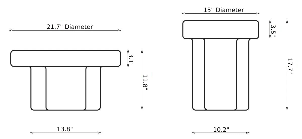 • Size: 15" Dia x 17.7" H - (Tall) , 21.7" Dia x 11.8" H (Short)